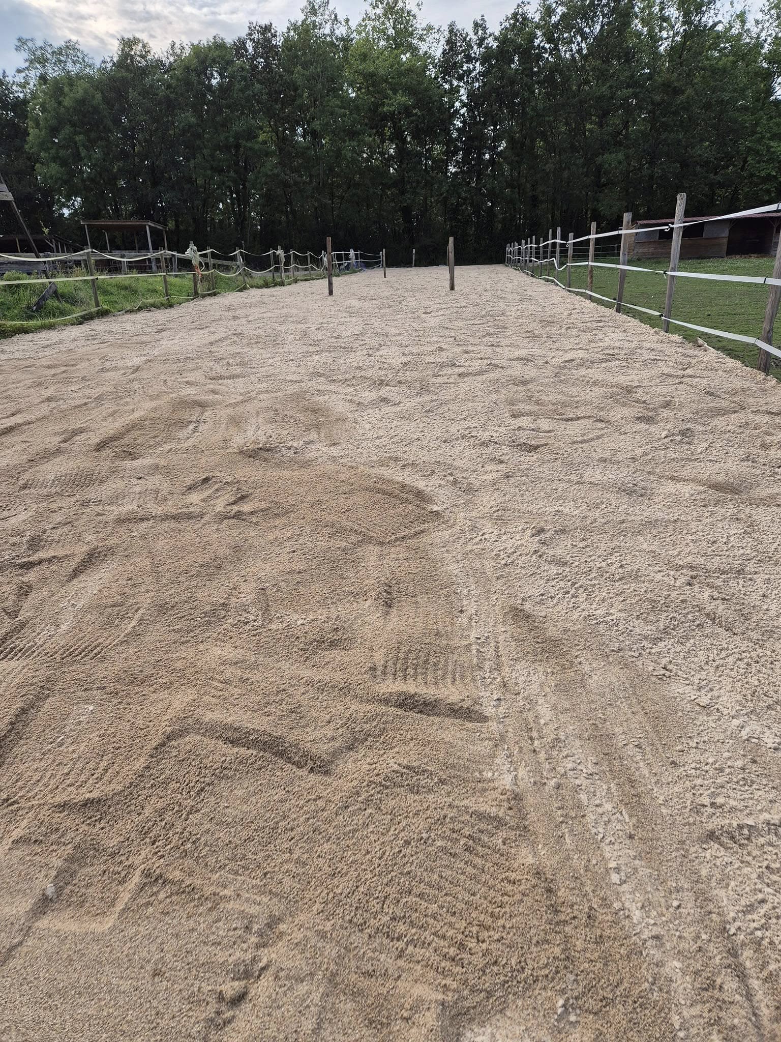 Des installations modernes et fonctionnelles. Nous mettons à dispositions une carrière 40×50 et une carrière 20×30 éclairées, arrosées et hersées.