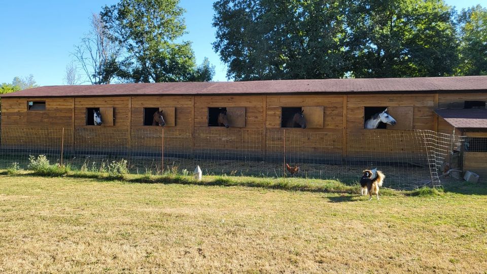 Les chevaux profitent de paddocks en herbe avec abreuvoirs automatiques et de paddocks en sable, idéals pour l’hiver afin de rester au propre et au sec.